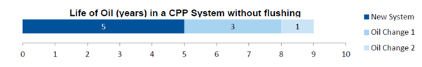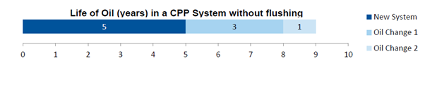 Figure 1: Life of the oil in a CPP system is approximately cut in half when new oil is put into a dirty system.